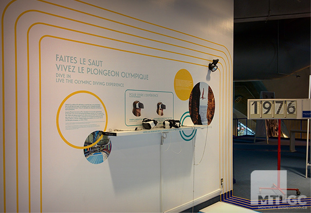 Les organisateurs de l’exposition ont tout mis en œuvre pour vous faire sentir comme si vous étiez présents aux jeux. Vous pouvez entre autres regarder la performance de Nadia Comaneci assis sur des bancs du vieux Forum, où se disputaient les épreuves de gymnastique. Vous pouvez également enfiler un casque de réalité virtuelle pour effectuer un saut de la tour de 10m!