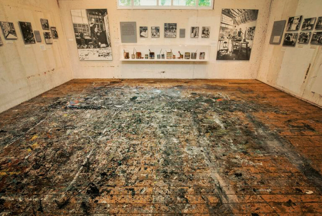 En 1945, le célèbre peintre expressionniste Jackson Pollock et son épouse Lee Krasner, ont échangé des œuvres d’art avec la mécène Peggy Guggenheim pour obtenir un prêt et acheter une petite maison en cèdre à Springs, une petite ville de Long Island. La demeure, située près du ruisseau Accobonac, comprend une grange qui a servi d’atelier au couple. Le sol de celle-ci est encore marqué par les éclaboussures de peinture des célèbres œuvres de Pollock.