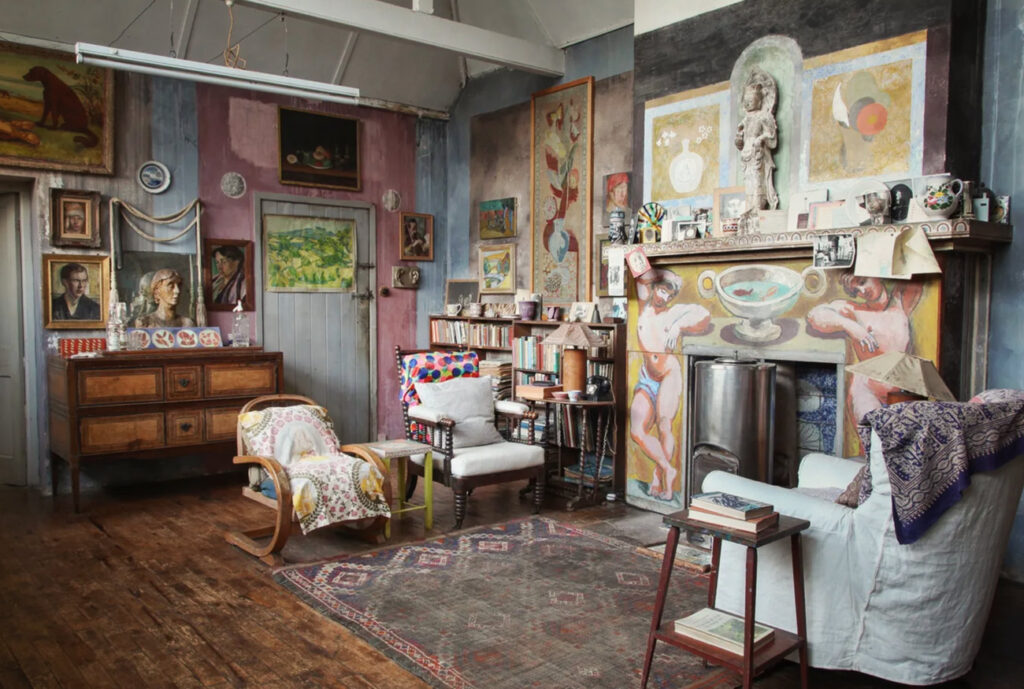Charleston est une ferme du XVIIe siècle ayant appartenu aux peintres Vanessa Bell et Duncan Grant. Située dans l’East Sussex au Royaume-Uni, cette ferme était aussi un point de rencontre pour certains des plus grands esprits créatifs du XXe siècle. Bell et Grant ont décoré chaque centimètre de la maison, recouvrant les meubles, la céramique, les textiles et toutes les surfaces imaginables de peinture et d’art. Leurs sources d’inspiration, tels les fresques italiennes et les tableaux postimpressionnistes, ont donné vie à un véritable tourbillon artistique.