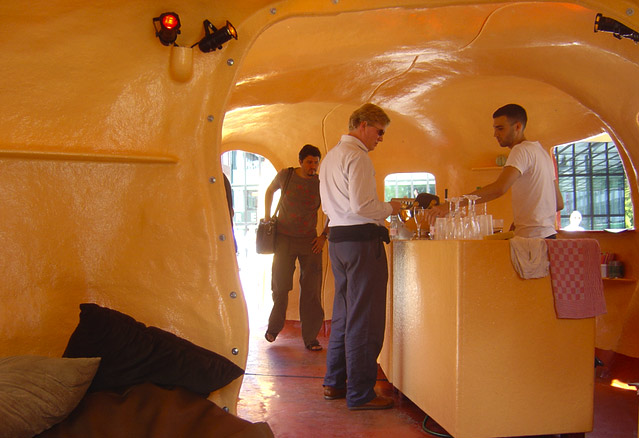 Avant que le soir ne tombe sur l’espace artistique, les visiteurs sont invités à aller déguster un jus, ou un café au -Rectum bar- qui prend quant à lui la forme des parties du système digestif humain, une expérience, il va de soi, complète!