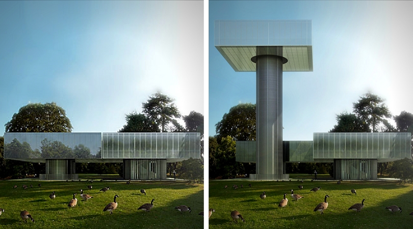 Cette résidence conçue par la firme Marks Barfield Architects, offre une grande flexibilité à ses habitants. Lorsqu’ils le souhaitent, ils peuvent s’élever jusqu’à plus de 40 mètres grâce à une colonne télescopique géante. Certaines parties du bâtiment peuvent ainsi se projeter au-dessus de la ville et servir d’observatoire aussi bien que se fondre parmi les autres habitations et ce qui l’entoure. Un projet qui s’insère aussi bien dans un milieu urbain qu’en nature.