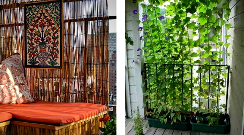 Qui dit balcon urbain dit voisins. On peut facilement apporter un peu d’intimité à un balcon histoire de relaxer sans être à la vue de tous. Treillis, paravent, toiles, choisissez ce qui s’agencera le mieux avec votre décor. Veillez toutefois à ce que les éléments préservant votre intimité n’envahissent pas vos voisins.