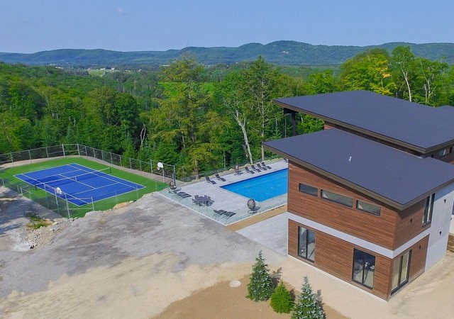 La piscine et le court de tennis au cœur des Laurentides