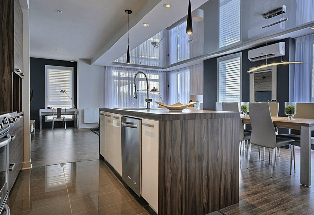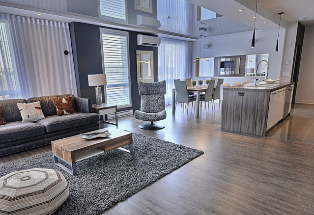 Au moment de notre visite, Cité 7 en était à la réalisation de la phase cinq du complexe, les résidents qui y habiteront auront donc l’opportunité d’y emménager sous peu et de pouvoir jouir à loisir de leur condo qui comprendra les caractéristiques suivantes: une ou deux chambres à coucher, une unité de plus de 1258 pieds carrés, des plafonds d’une hauteur de neuf pieds, une fenestration abondante, un stationnement intérieur et finalement, un balcon de 230 pieds carrés, ouvert sur un aménagement paysager raffiné.