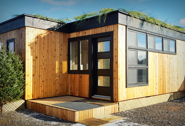Les conteneurs sont idéaux pour les mini-maisons, ces résidences de petite taille qui coûtent beaucoup moins cher que la moyenne ! On y vit simplement avec seulement ce dont on a besoin. Située à Vaudreuil, l’entreprise Maisons Optimum a compris l’engouement pour les mini-maisons. Les deux conteneurs qui composent son modèle créent une volumétrie simple et un design épuré, en plus de permettre l’ajout d’un toit vert sans difficulté grâce à la grande rigidité structurale. Dans le climat québécois, de telles maisons nécessitent toutefois l’ajout d’une isolation convenable, souvent par l’extérieur pour ne pas perdre d’espace.