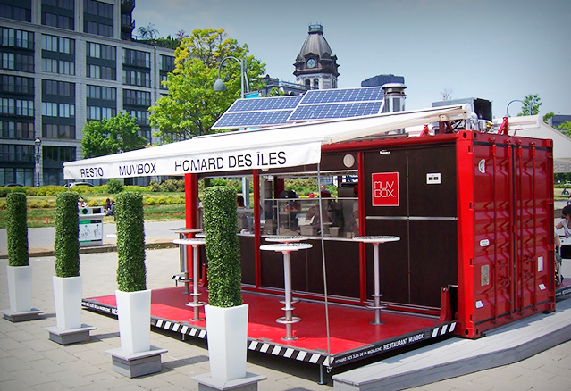Ce restaurant mobile situé dans le Vieux-Port fait usage d’un ingénieux système de réutilisation de conteneurs. Préfabriqués en usine, les modules MuvBox peuvent facilement être transportés et installés facilement pour la saison estivale. La nuit venue, les propriétaires n’ont qu’à refermer les parois du conteneur. La petite taille du restaurant et son design soigné signé Sid Lee Architecture créent une ambiance conviviale qui plaît grandement aux nombreux touristes qui fréquentent le coin.