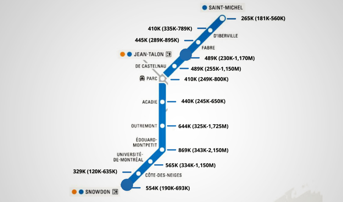 - Édouard-Montpetit: 869 000$ (ligne bleue)
