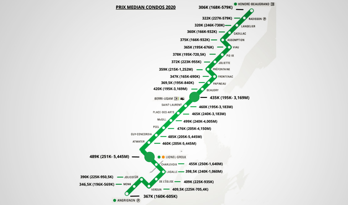 - Honoré-Beaugrand: 306 000$ (ligne verte)