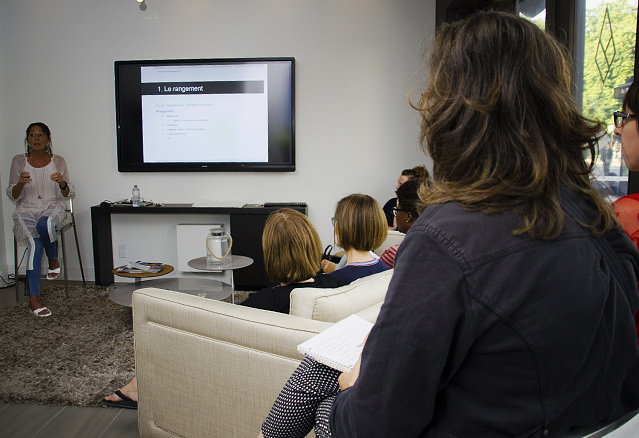 Le séminaire, offert par Marie-Josée Leblanc, spécialiste en «homestaging» et blogueuse design chez Guide Immo consistait à donner des trucs constructifs afin de faciliter le transfert d’une grande habitation à un plus petit condo ou à une résidence pour personnes âgées par exemple. Les conseils de «downsizing» étaient des plus pratiques, ils s’appliquaient aux gens diminuant leur superficie d’habitation, mais aussi à tous les résidents de condos actuels. Voici les trois conseils qui nous ont marqué :