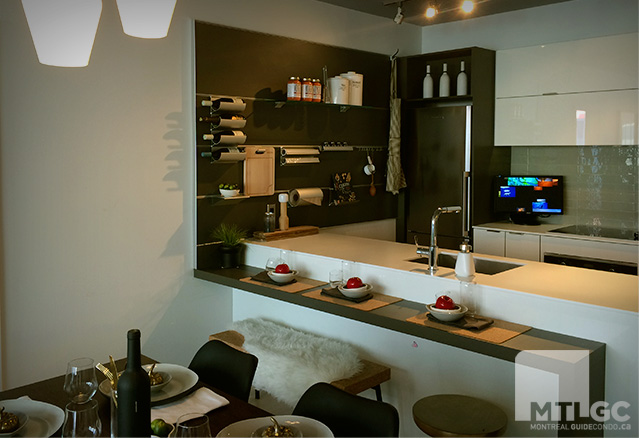 Les amateurs de design seront aussi comblés : les unités seront équipées d’une « tool kitchen », très populaire en Pologne et une première au Canada. Celle-ci consiste en un assemblage personnalisé de tablettes, de crochets et de différents accessoires de rangement, au goût du propriétaire, le tout sur un mur de bois. Le résultat : une cuisine aux lignes épurées et les outils culinaires à porté de main.