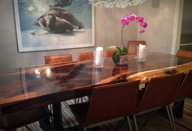 Lorsqu’insérés dans une cuisine contemporaine, les billots deviennent l’élément central. Ils attirent l’attention au premier regard. Le choix de la pièce est donc très important. L’arbre qui sera coupé doit être sélectionné précautionneusement, puis taillé sur mesure pour la cuisine qui l’accueillera. C’est un travail artisanal qui est la bienvenue à l’ère de l’industrialisation et de la préfabrication. La compagnie montréalaise Mat Pel récupère les arbres urbains coupés et destinés à être transformés en brin de scie pour en faire de jolie slabs de bois massif.