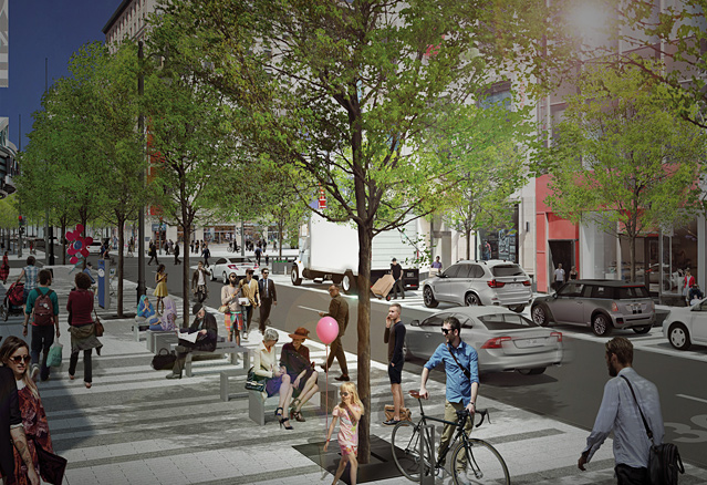 The street’s Western end has established a reputation similar to that of New York’s 5th Avenue or Chicago’s Michigan Avenue, among Montrealers and tourists. Located at the heart of the city, St. Catherine Street stretches across Montreal’s business center and benefits from the proximity of McGill and Concordia Universities as well as the impressive number of downtown residents.