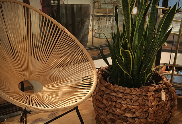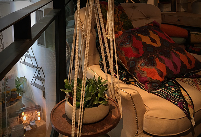 divan en cuir foncé Le boho-chic est une tendance très populaire chez nos voisins du sud, surtout en Californie. De plus en plus, on s’approprie ici aussi ce style qui prend ses influences d'un peu partout dans le monde. chaise extérieur avec tabouret lampe pour table à manger style bohémien Chaise et plante dans un condo style boho-chic Pour l’adopter il faut oser mélanger, dépareiller et miser sur le naturel et la simplicité. Et tout ça, selon nos goûts, notre style et surtout, nos souvenirs. Au fond, c’est un décor qui sera le reflet de votre personnalité. plante de style bohémien sur un meuble Je suis allée faire un tour à la boutique V de V située sur Saint-Laurent dans le Mile End. C’est LA boutique où vous devez aller si vous aussi vous souhaitez adopter le bohémien chic.