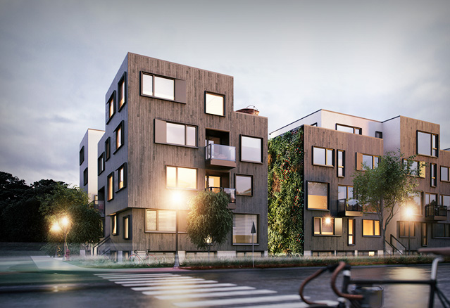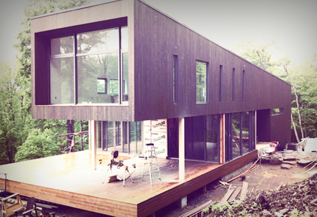 Les images suivantes montrent une résidence à Sutton de l’Atelier Pierre Thibault ainsi qu’un complexe d’habitation de la firme Kanva qui font usage du bois calciné comme revêtement extérieur principal. L’autre exemple est un immeuble de la firme Zwarthout. Les résultats sont plutôt alléchants!