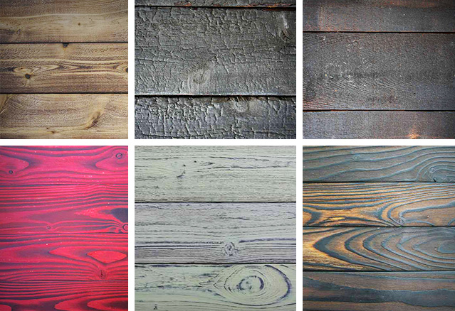 Ses qualités esthétiques sont aussi indéniables ! Une variété de finis peuvent être créés, que ce soit zébré, lisse, craquelé ou tacheté, en jouant avec le temps de carbonisation. Les teintes foncées laissant paraître les motifs naturels du bois ajoutent une touche raffinée aux revêtements de meubles, par exemple. Des couleurs peuvent même être appliquées sur le bois avec de la peinture de lait, mais cela rend le produit légèrement plus cher.