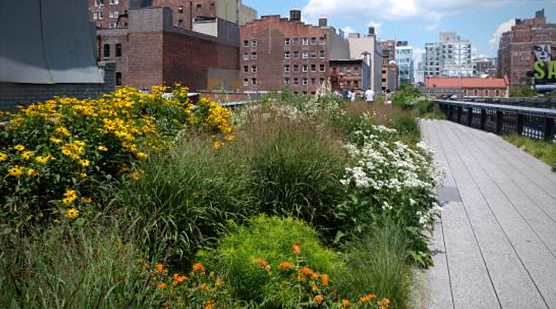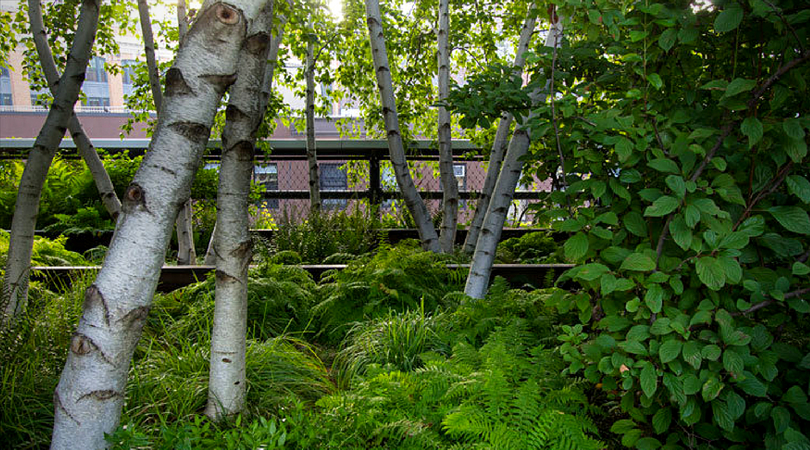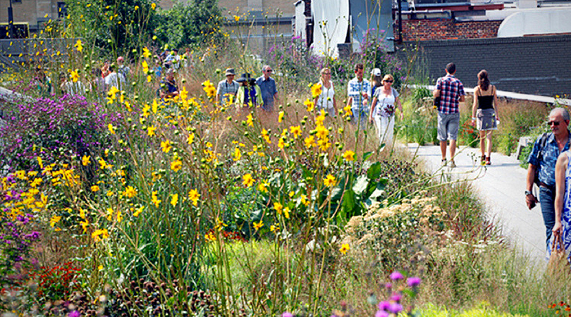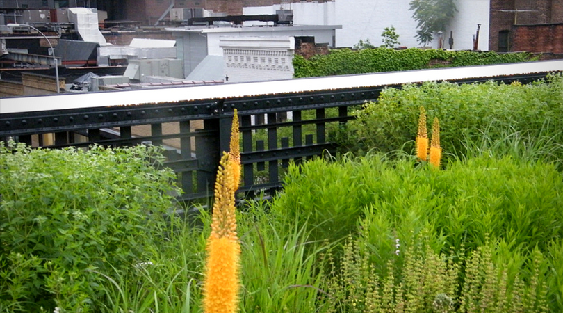 350 espèces de vivaces poussent sur le High Line. Le paysagement, la variété et la quantité de végétaux sont remarquables. Essences d’arbres, graminées, fleurs, on a privilégié des espèces indigènes pour l’aménagement paysager.