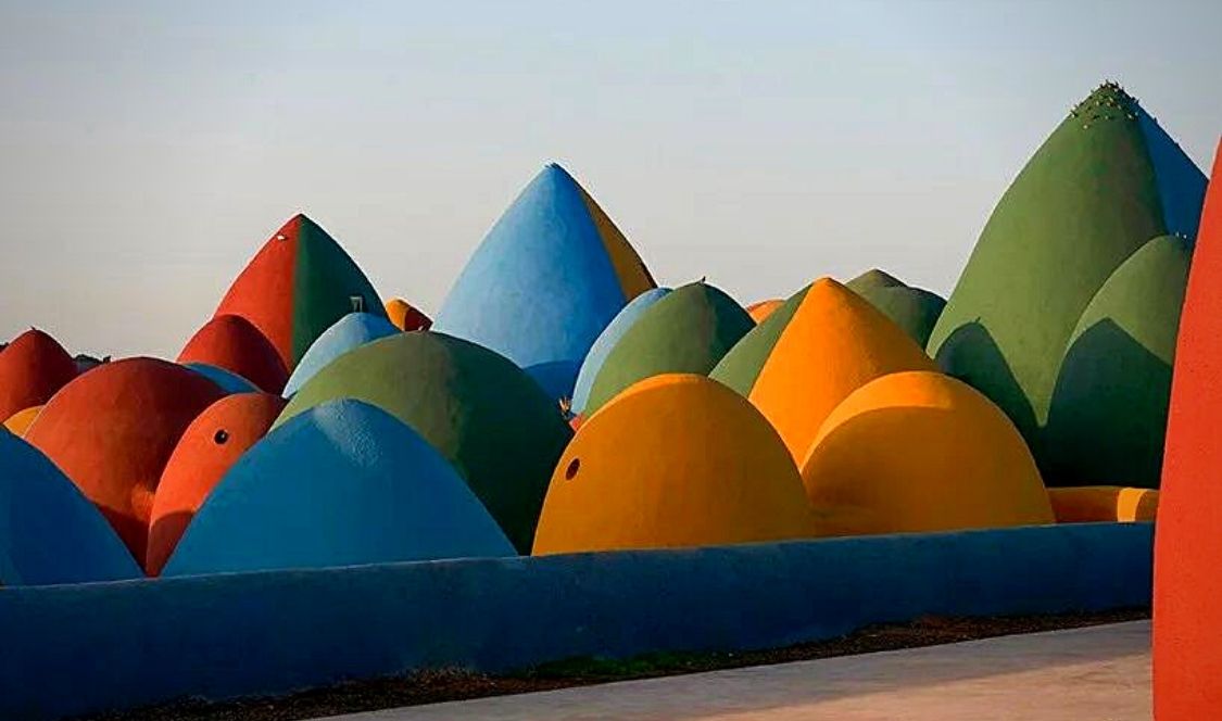 Créé par le studio de design iranien ZAV Architects, ce spectaculaire hébergement touristique est composé d’une multitude de petits dômes construits avec la technique de l’écodôme. Cette technique développée par l’architecte iranien Nader Khalili consiste à empiler des sacs remplis de terre, de sable ou de pierre maintenus par des fils de fer. Une technique peu onéreuse et écologique qui offre l’avantage de pouvoir être facilement reproduite par des artisans locaux et des travailleurs non qualifiés.
