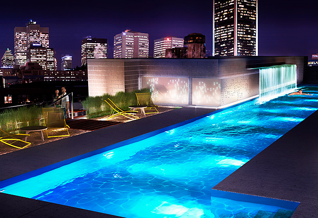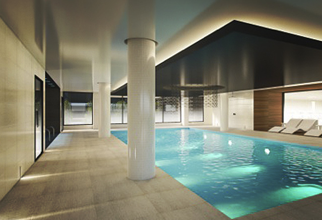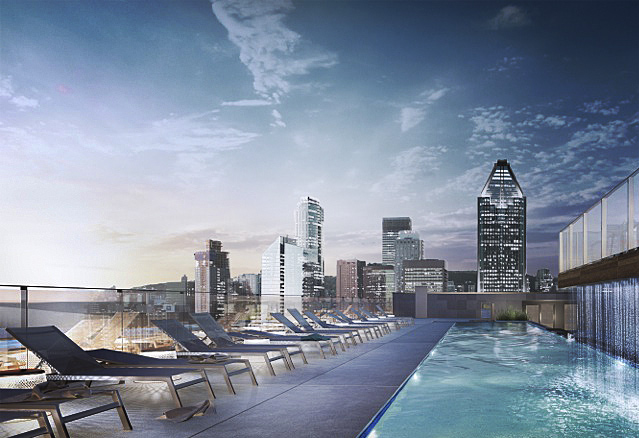 - Espaces communs : terrasses aux toits avec piscines, espaces BBQ, aires de détente et chalet urbain