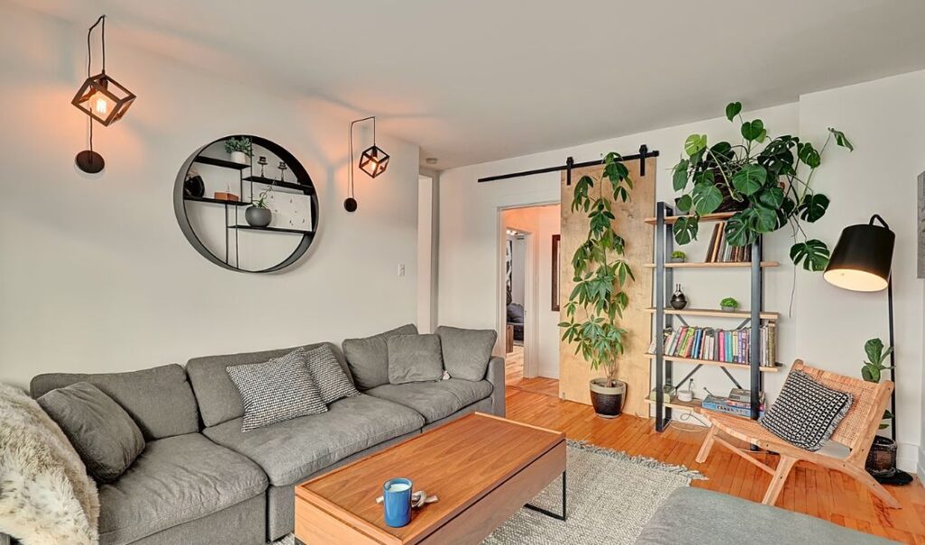 La deuxième chambre peut aisément servir de bureau à domicile, ce qui est idéal pour le télétravail. On remarque également le mur d’escale ingénieusement aménagé au mur!