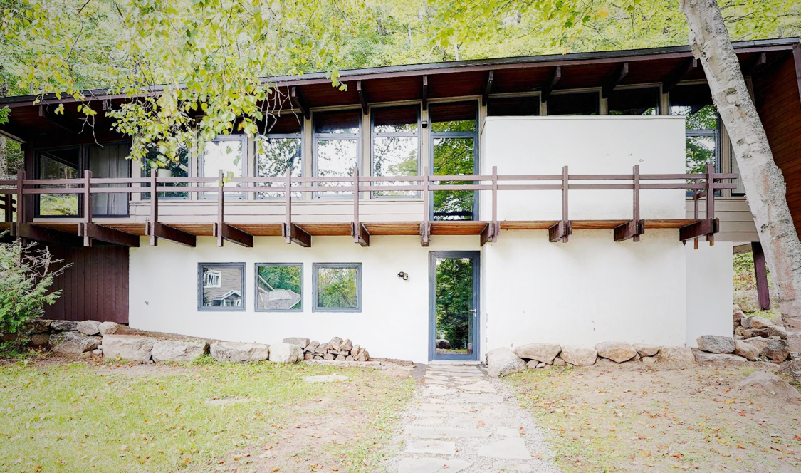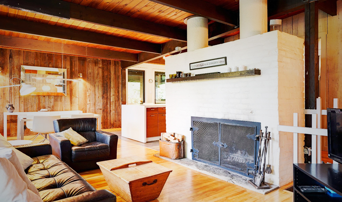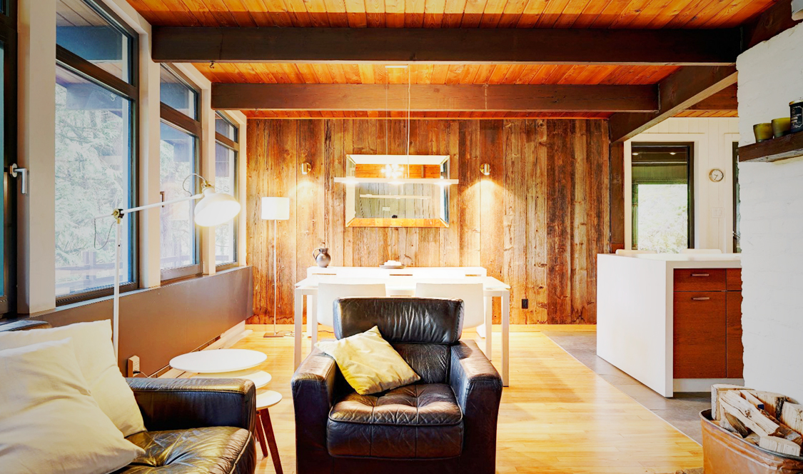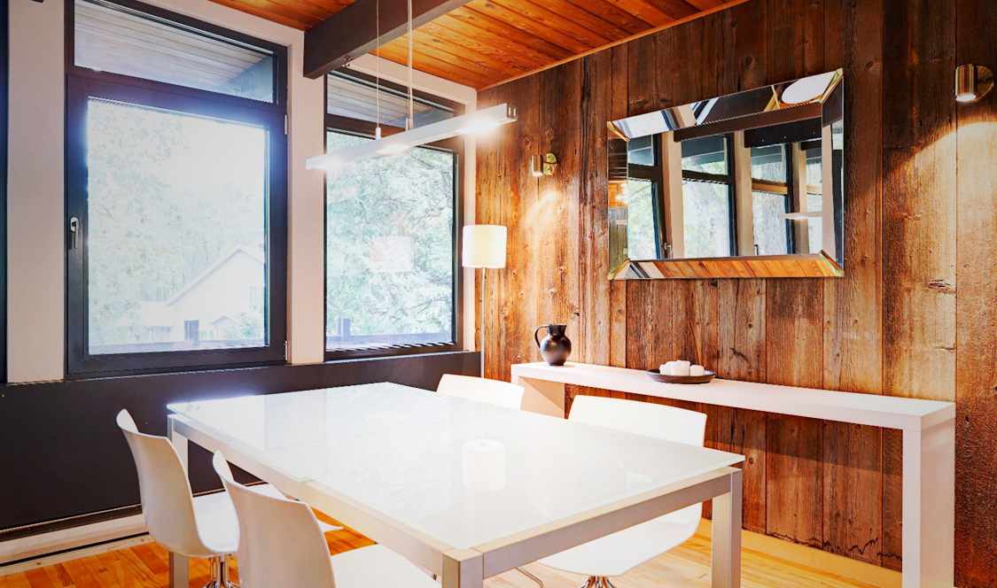Cette maison de style mid century se trouve à Saint-Adèle, sur un terrain de quasiment un acre, au pied d’une montagne boisée, dans un environnement où la nature a gardé ses droits. Construite en 1958, sans doute par un architecte, la structure a su garder ses lignes épurées d’origine et son cachet chaleureux.