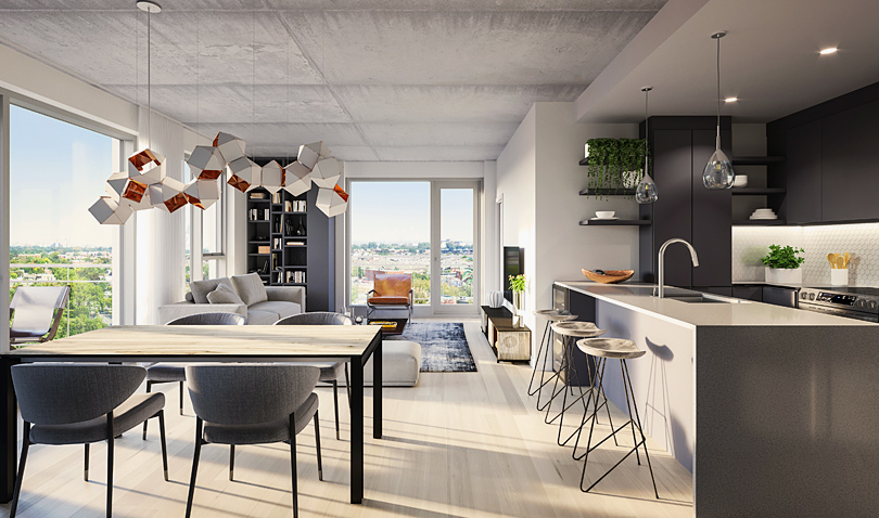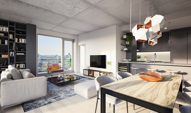 Avec des configurations qui offrent de une à trois chambres à coucher jusqu’au penthouse, la variété des types de «layouts» des unités de la phase 2 du MUV permettent de rejoindre une large clientèle.
