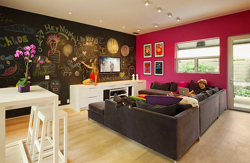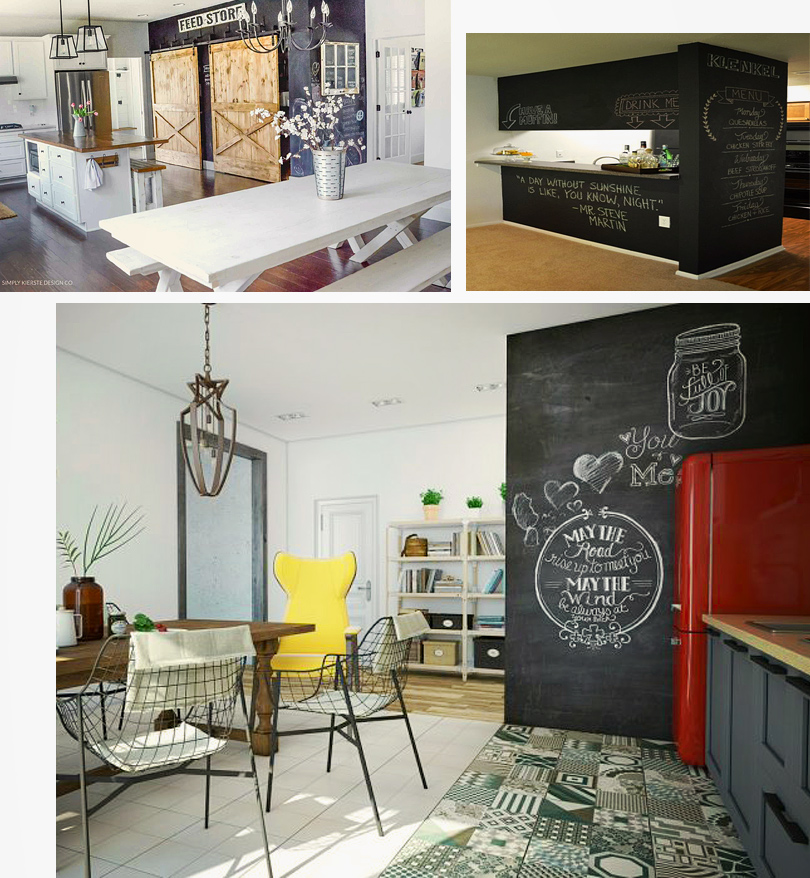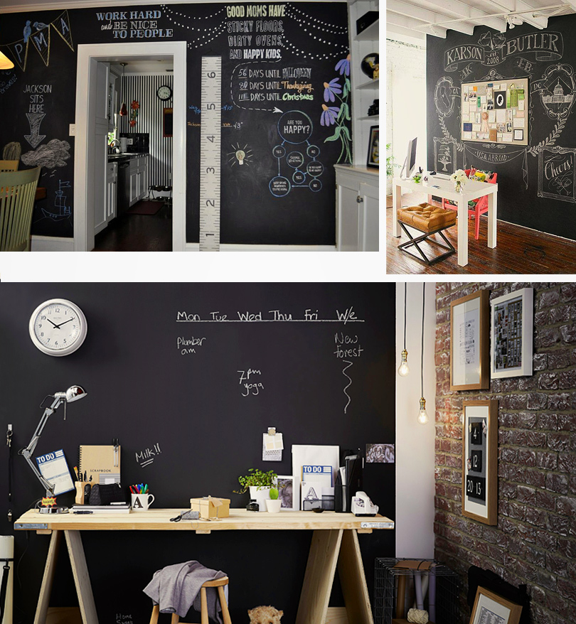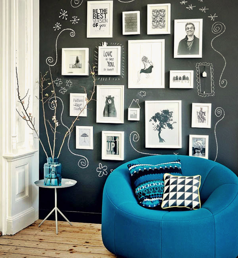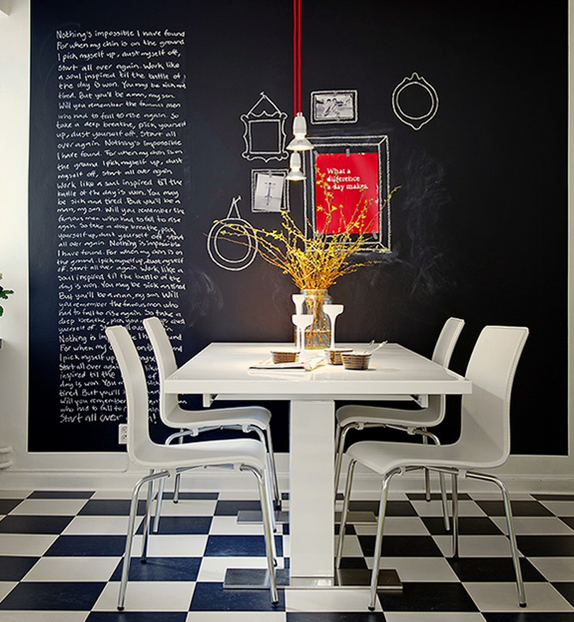 Aménager une pièce avec un mur en peinture à tableau noir n’est pas sorcier. Tout d’abord il vous faudra choisir le mur, assurez-vous qu’il ne soit pas dans un coin de grande circulation, les frottages succincts lui feraient perdre de son chic…