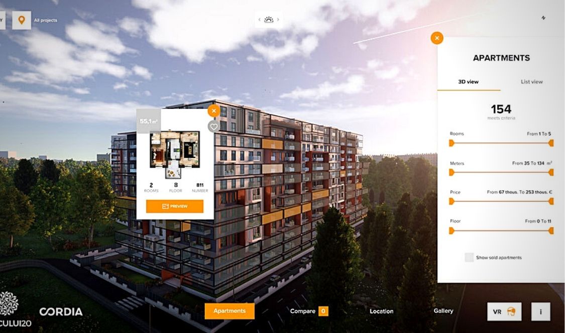 Étant déjà bien établie en Europre, Resimo a fait ses preuves auprès de nombreux promoteurs immobiliers en facilitant la vente de quelque 4 360 unités. Jusqu’à présent, l’entreprise a implanté plus de 150 applications et a travaillé auprès de promoteurs tels que Bertone Corporation, Corsim, Bouygues Immobilier, Vinci Immobilier, Echo Investment et plusieurs autres. Le présentateur 3D fourni par Resimo offre une vaste gamme de fonctionnalités qui font de lui l’une des applications immobilières les plus complètes qui soient pour favoriser la vente et la location d’unités.