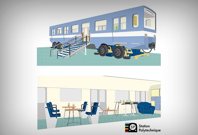 Ce projet élaboré par des étudiants de Polytechnique Montréal consiste à aménager des espaces de réunion et de détente ainsi qu’un café dans les wagons, et de les disposer à l’intérieur de leur école. Les systèmes mécaniques du métro seront ainsi exposés aux étudiants en génie.