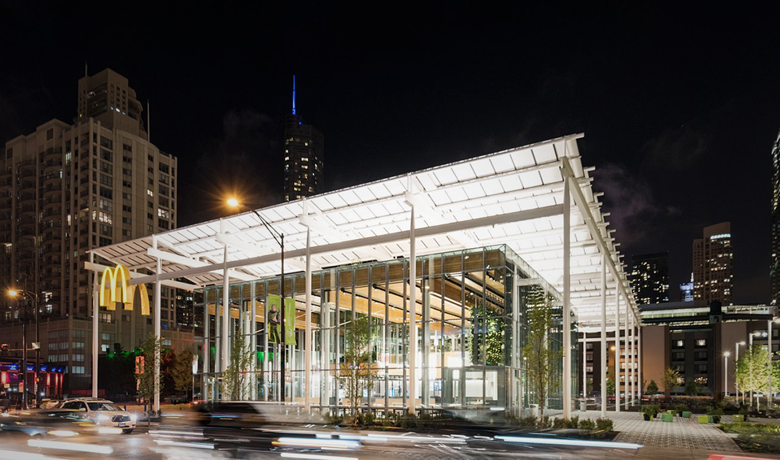 Par contre, le nouvel édifice a su rapidement charmer les plus septiques. Développé par Ross Barney Architects et Landini Associates (pour les intérieurs), le nouveau restaurant est plutôt séduisant. Avec ses airs d’«Apple Store», il donne, plus que jamais, le goût d’aller déguster un non moins séduisant «Big Mac».