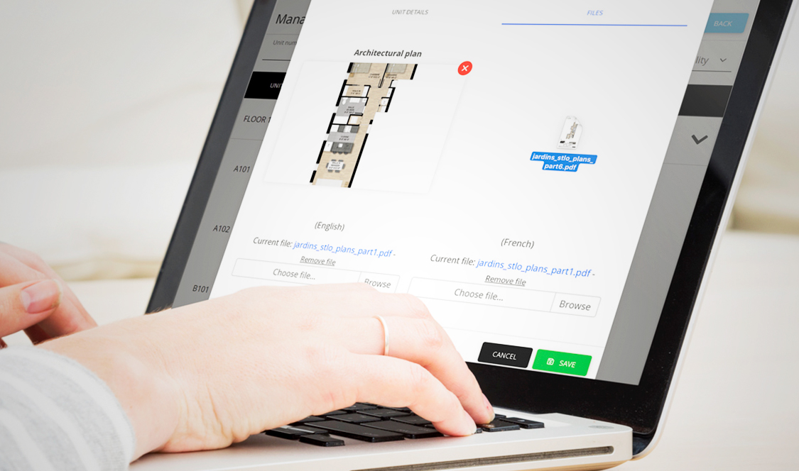 Le promoteur immobilier peut facilement gérer ses plans sur son site web par le biais du logiciel Smart Condo Plans.