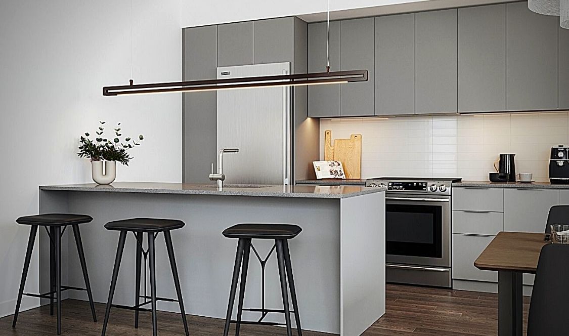 Les maison de ville Tak Village sont livrées clés en main avec, entres autres, un ensemble d’électroménagers contemporain comprenant réfrigérateur, four, surface de cuisson, lave-vaisselle, four à micro-ondes et hotte encastrée.