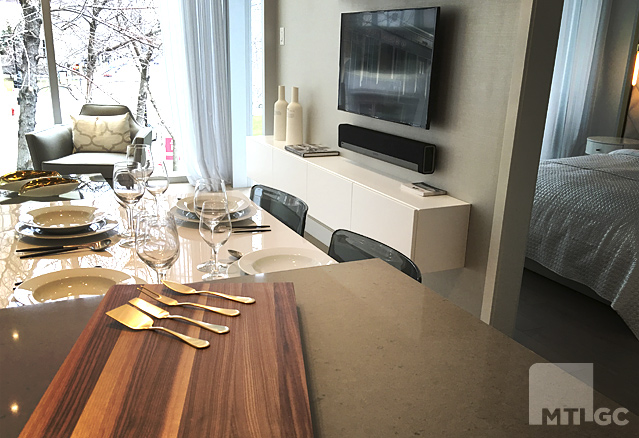 Des unités de 398 pieds carrés à 996 pieds carrés, des plafonds de 9 pieds, bois d’ingénierie et bien plus. Ici, suite Junior de 367 pieds carrés pour 209 990$, plus taxes.