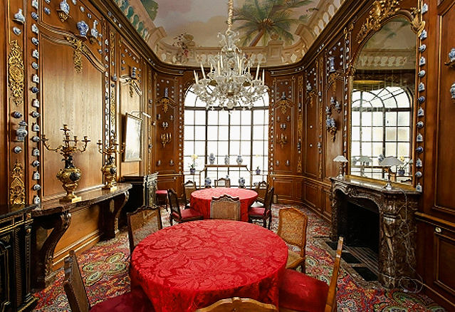 Évidemment, le tout n’est pas pour toutes les bourses, 5 775 000 €, mais franchement, c’est délicieux de savoir qu’il existe un monde où on rêve encore de fastueuses réceptions, où draperies, tentures et boiseries créent un mélange organique qui nous transporte dans un autre monde…
